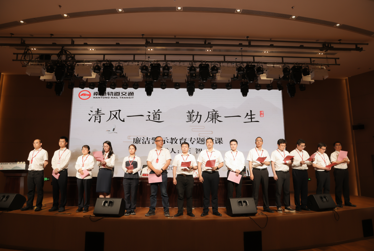 党委书记、董事长王智结合轨道交通行业的违纪违法案例,为大家上了一堂题为《纪法在心、警钟长鸣,清风一道、勤廉一生》的精准警示教育党课。他对公司干部职工廉洁从业提出了殷切希望,要求全体党员干部职工以案为鉴,深刻汲取地铁同行的教训,从思想上牢牢绷紧廉洁自律之弦,常思贪欲之害,常怀律己之心,始终做到忠于职守、廉洁从业。他就加强公司廉洁文化建设,推动全面从严治党迈上新台阶提出三点要求。一要强化教育,营造崇廉拒腐的氛围。要通过学习宣传、警示教育、廉洁承诺、谈心谈话、家庭助廉等形式,推动公司“清风一道 勤廉一生”的廉洁文化理念入脑入心入行,筑牢党员干部崇廉拒腐思想防线,打造一支忠诚、干净、担当的轨道交通党员干部职工队伍。二要加强监督,压实全面从严治党责任。要压实各基层党组织全面从严治党责任,配齐配强纪检监督人员,充分发挥纪检委员、内部监督员的作用,将监管延伸到一线。综合运用政治督导、业务督查、审计监督等方式,加强对基层党建、经营管理、履职尽责情况等的监督,切实加强作风建设,提升工作绩效,推进全面从严治党迈上新台阶。三要坚持长效,用好监督执纪“第一种形态”。要把纪律和规矩挺在前面,加强问题线索管理,建立健全公司员工违纪违规行为处理办法。加强干部日常教育管理,充分运用监督执纪“第一种形态”的作用,让“咬耳扯袖、红脸出汗”成为常态,针对苗头性、倾向性问题,及时运用提醒谈话、诫勉谈话、通报批评等措施进行警示、问责。