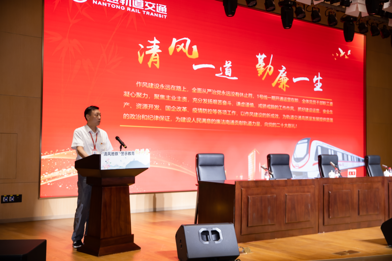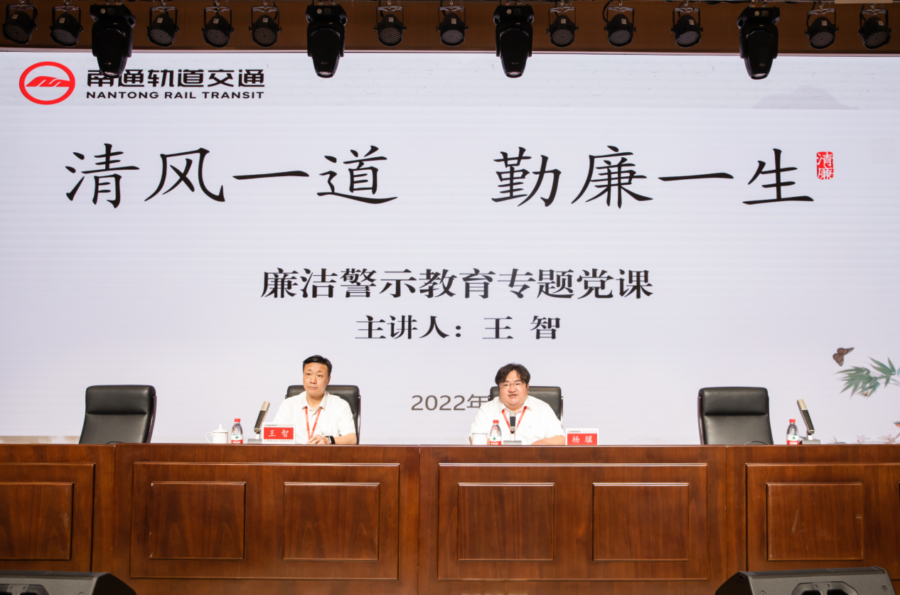 党委书记、董事长王智结合轨道交通行业的违纪违法案例,为大家上了一堂题为《纪法在心、警钟长鸣,清风一道、勤廉一生》的精准警示教育党课。他对公司干部职工廉洁从业提出了殷切希望,要求全体党员干部职工以案为鉴,深刻汲取地铁同行的教训,从思想上牢牢绷紧廉洁自律之弦,常思贪欲之害,常怀律己之心,始终做到忠于职守、廉洁从业。他就加强公司廉洁文化建设,推动全面从严治党迈上新台阶提出三点要求。一要强化教育,营造崇廉拒腐的氛围。要通过学习宣传、警示教育、廉洁承诺、谈心谈话、家庭助廉等形式,推动公司“清风一道 勤廉一生”的廉洁文化理念入脑入心入行,筑牢党员干部崇廉拒腐思想防线,打造一支忠诚、干净、担当的轨道交通党员干部职工队伍。二要加强监督,压实全面从严治党责任。要压实各基层党组织全面从严治党责任,配齐配强纪检监督人员,充分发挥纪检委员、内部监督员的作用,将监管延伸到一线。综合运用政治督导、业务督查、审计监督等方式,加强对基层党建、经营管理、履职尽责情况等的监督,切实加强作风建设,提升工作绩效,推进全面从严治党迈上新台阶。三要坚持长效,用好监督执纪“第一种形态”。要把纪律和规矩挺在前面,加强问题线索管理,建立健全公司员工违纪违规行为处理办法。加强干部日常教育管理,充分运用监督执纪“第一种形态”的作用,让“咬耳扯袖、红脸出汗”成为常态,针对苗头性、倾向性问题,及时运用提醒谈话、诫勉谈话、通报批评等措施进行警示、问责。